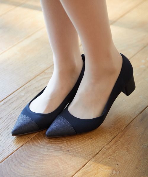【ブラック】【S~LLサイズ 22.5cm~25.0cmサイズ選択可】【4.5cmヒール】ポインテッドトゥ ラメパンプス 結婚式/謝恩会/成人式/パーティ 5461101-00_5461102-00_5461103-00_5461104-00<5461101-00>
