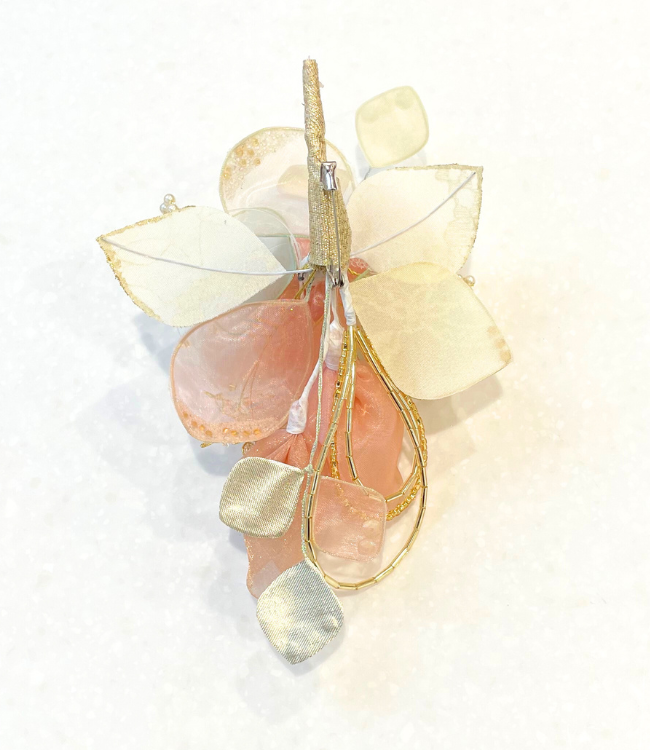 人気のボリュームコサージュですが、透け感のあるオーガンジーを使用する事で、主張しすぎない絶妙な存在感になっています。