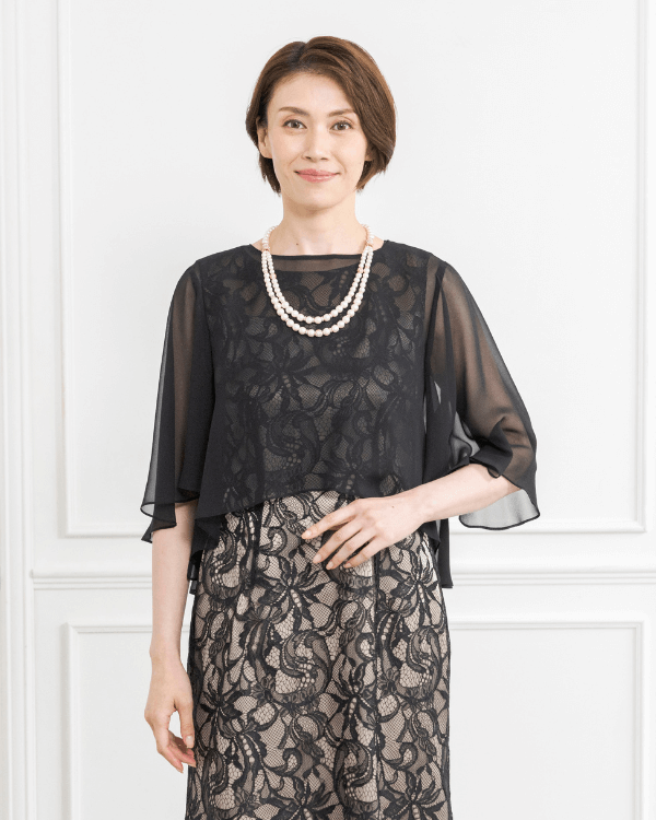 【ブラック】ラッセルレース シフォンケープ付きロングドレス<6421202-00>