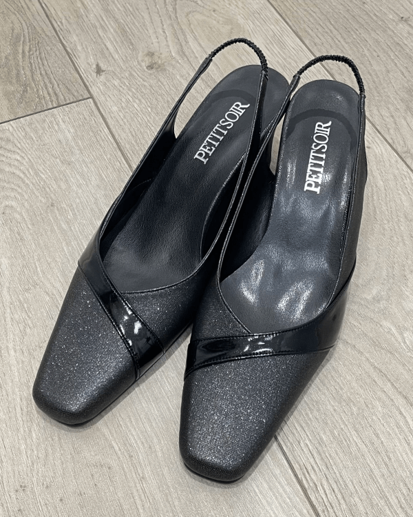◇ラメ入りの生地にエナメルラインが華やかなフォーマルシューズ◇