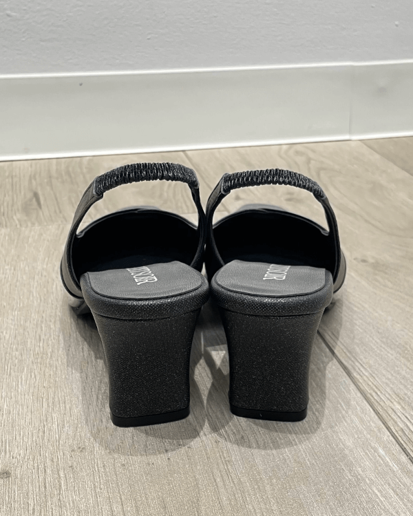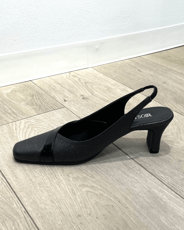 【ブラック】【Lサイズ24.0cm-24.5cm】【6.0cmヒール】ラメ 合皮 エナメルラインアクセント バックレスパンプス<5561107-00>