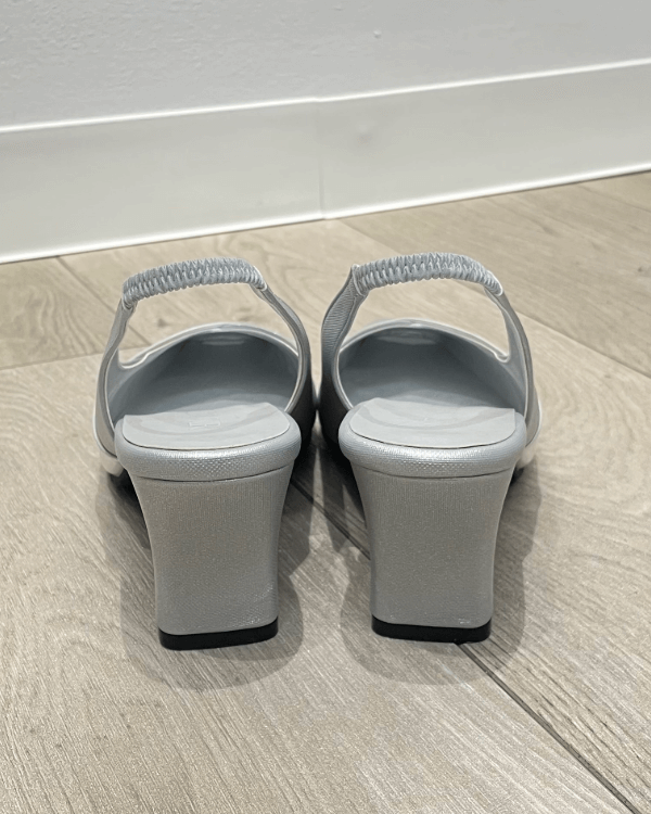 【シルバー】【Lサイズ24.0cm-24.5cm】【6.0cmヒール】ラメ 合皮 エナメルラインアクセント バックレスパンプス<5561107-91>